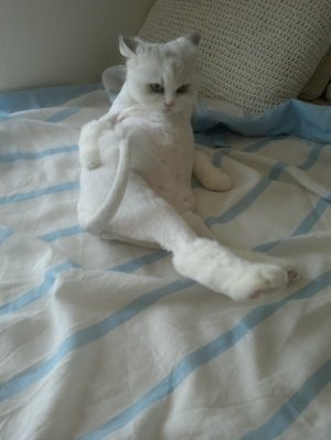 그리고 대망의 미용후... ㄷㄷ 고양이는 털빨이 80라는 것을 알게 되었음. 뭔가 럭셔리 해보이던 외모는 온데간다 없고. 외계인 같은 뱃살 덕후가 나타난거임.