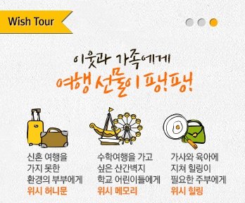 마지막으로 이웃과 가족을 위한 행복 여행 프로젝트 위시투어까지! 이렇게 3가지 프로젝트가 있는데요.