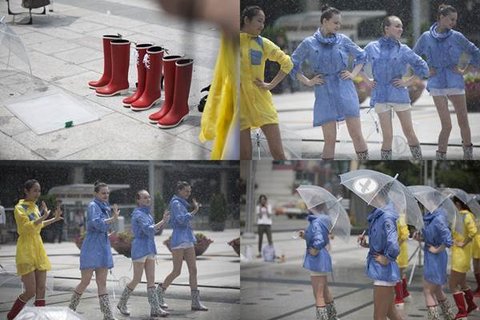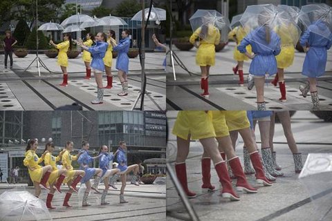 상큼하고 발랄한 노래에 맞춰 레인부츠 신은 모델 언니들이 빗속에 댄스 댄스~!