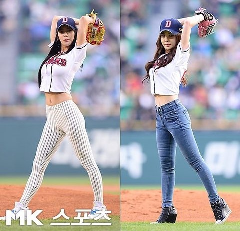 두산 채널 기념 클라라 vs 강예빈 시구 사진 ㅎㅎㅎ