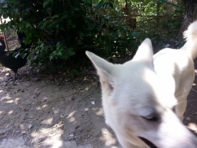 닭들은 사람손을 타서 개나 사람이나 별로 안무서워함
