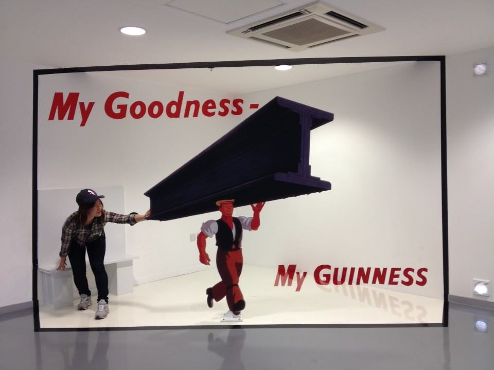 다음 층은 Guinness의 광고 역사를 볼 수 있습니다. TV광고, 포스터 및 등등! 그리고 아래 사진과 같이 관광객들을 위해 만들어진 포토 존이 있습니다. 물론, 광고효과를 노린 것이긴 하지만, 지겨운 관광이 아니어서 좋은 생각이라고 생각되었습니다.