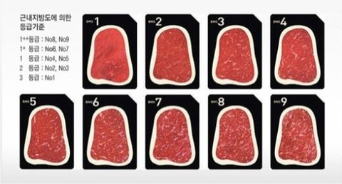 1등급 소일수록 빨간 근육사이에 하얀부분이 많습니다. 보통은 마블링이라고 하죠. 바로 지방입니다. 3등급소는 빨가아앟죠? 전부 근육이기에 질기디 질기고 싼값에 팔립니다.