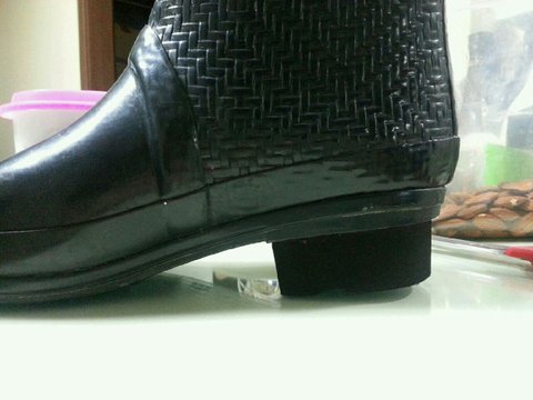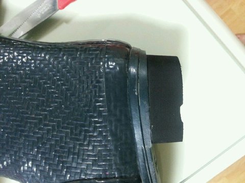 신발 뒷굽을 아예 잘라서 없애버리고 이상한 워커굽같은 아예 재질자체가 다른것을 달아놓은것이