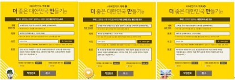 이렇게 각 주제별로 된 글 작성 양식란에 간단히 정보만 기입하면 참여가 가능합니다.