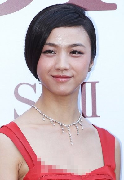 앞머리 독특하게 처리하고 하나로 묶은 머리였던 탕웨이의 헤어스타일