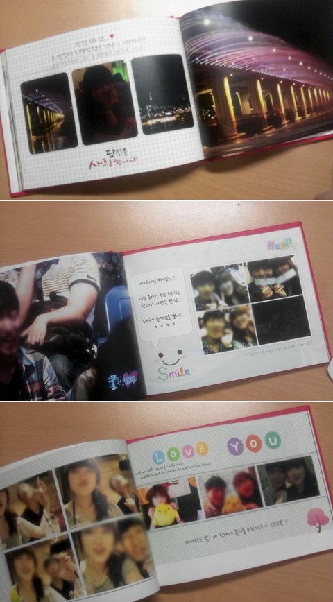 스케치북에 일년동안 있었던 일을 사진이랑 같이 정리해 놓은 거임... 사진은 저정도 밖에 못찍었지만 훨씬 많은 내용이 담겨져 있움....우리 친구들한테 부탁해서 일일이 받은 축하 편지도 있음ㅠ