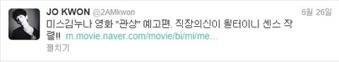 미스김 누나 응원메시지와 함께 예고편 링크 멘션을 날렸더라구요?