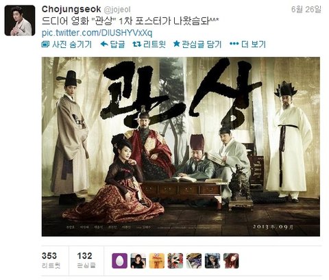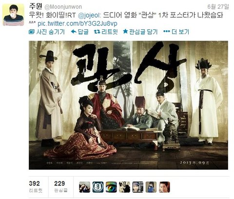 게다가 배우 주원까지 <관상>에 열광적인 반응 보여주더라구요?