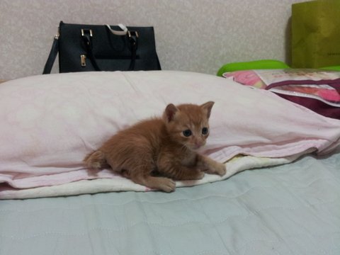 집에갔더니 아부지 옆에 왠 새끼고양이가 놓여져있었음