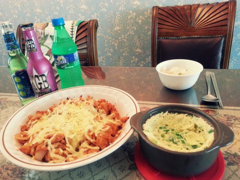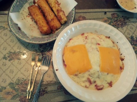 감자베이컨그라탕이랑 식빵으로 만든 치즈스틱이에요ㅎㅎㅎ친구 두명이랑 저거 만들고 바로 요리 교실 결성했어요ㅋㅋㅋ재밌고 맛도 짱이었던 치즈스틱ㅠㅠ그라탕^~^
