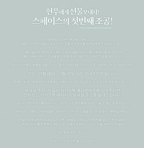 이현우에게 팬레터 보내기 참여하실분?