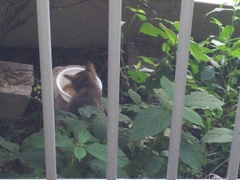 아버지가 사료를 조금 줬더니 게눈 감추듯 먹어치우더군요. 그리곤 낮잠을 자다가 저녁에 다시 밥달라고 울고 가까이 가면 소스라치게 놀라서 도망가구요. 경계가 심합니다.