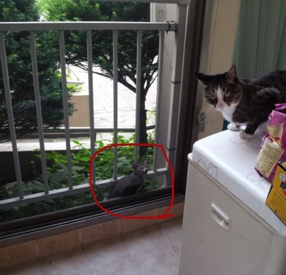 아마도 그때 그 새끼 고양이 중 한마리인것 같은 데 아무리봐도 어미나 다른 새끼들은 안보이고 하루종일 밖에서 울며 집안에 있는 고양이만 쳐다보고 있습니다.