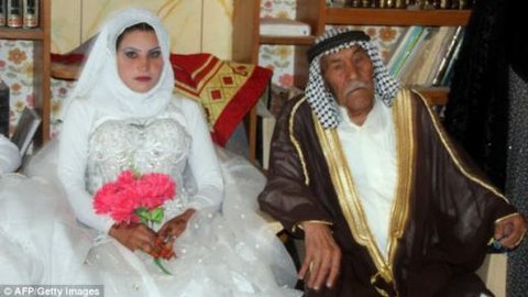 이라크의 92세 남성이 70세 연하인 22세 여성과 결혼식을 올렸다. 그는 17,16세 손자들과
