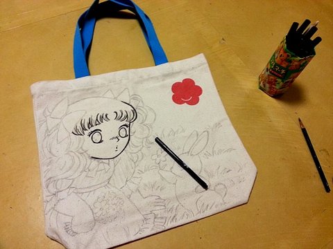 캔버스 백의 소재 자체가 일반 티셔츠의 옷감보다는 연필로 그림그리기에 용이하지만,