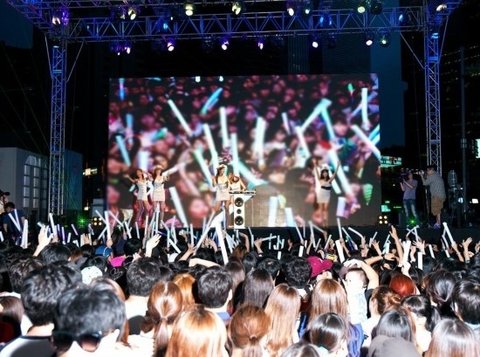 박윤정씨의 디제잉에 맞춰 옥타곤 크루즈걸들이 관객분들에게 야광봉을 나눠주며,