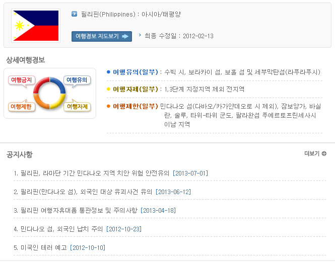 외교부 해외안전여행 홈페이지에 가면 이렇게 필리핀에 대한 정보가 들어있으니,