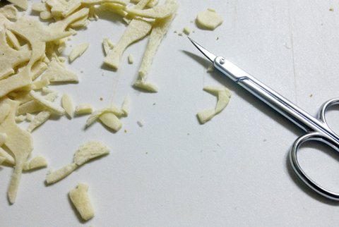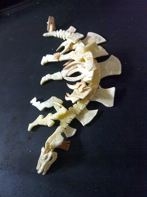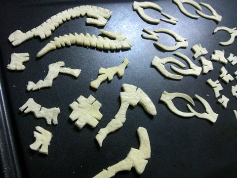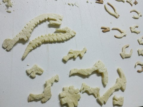 식빵 흰 부분을 도화지삼아서, 공룡 뼈 모양으로 잘라줌