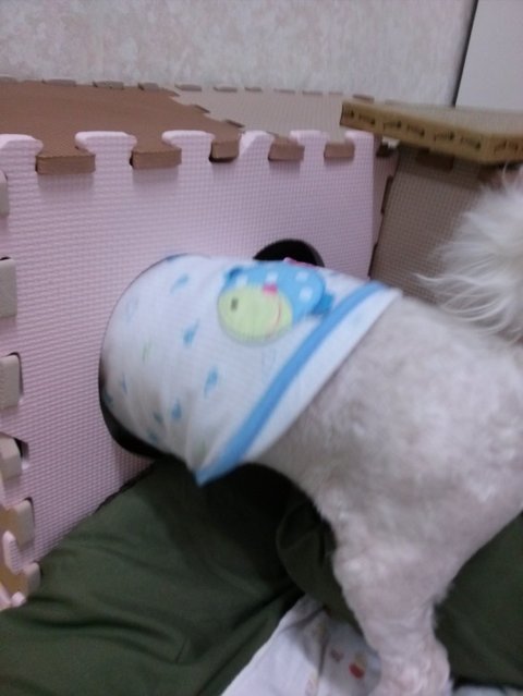 곧있을 2차 예방접종을 앞에 두고 주사를 대비하여 궁댕이 살을 올리고 있음.