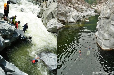 때로는 급류에 내 몸을 완전히 맡긴 채 떠내려가는 재미, 더위에 지쳤을 때 장난기가 발동한 승냥이 같은 무리들이 사지를 붙잡아 물에 빠지고 빠뜨리는 재미있는 체험까지 할 수 있었습니다.