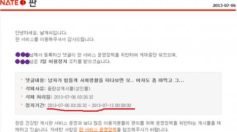 7월6일부터 정지된 닉네임이 7월7일에 3개나 되는구나??