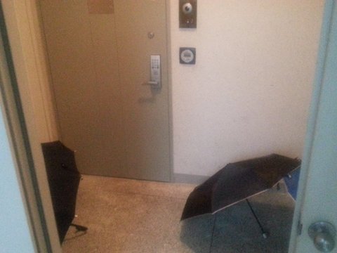 아무런 대응도 안하다가 오늘은 소심하게 우산을 계단쪽으로 가져다 두었습니다.