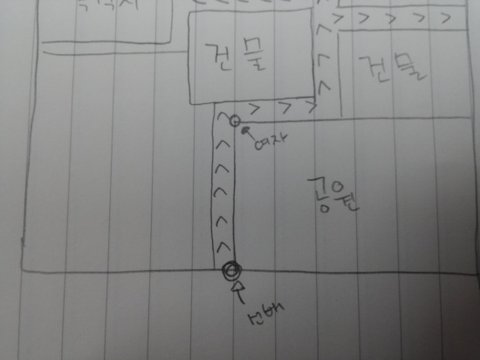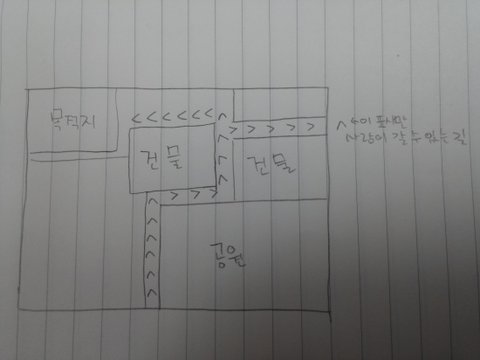반드시 <이 표시로만 움직일 수 있고 딱 하나 방법이 더 있다면 공원을 가로질러 가는 방법이 있지