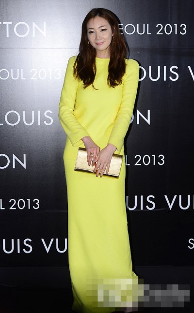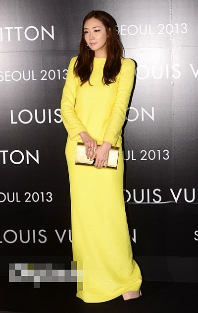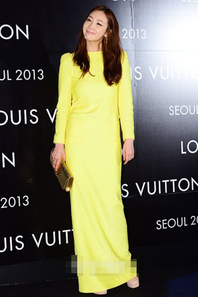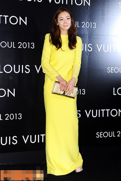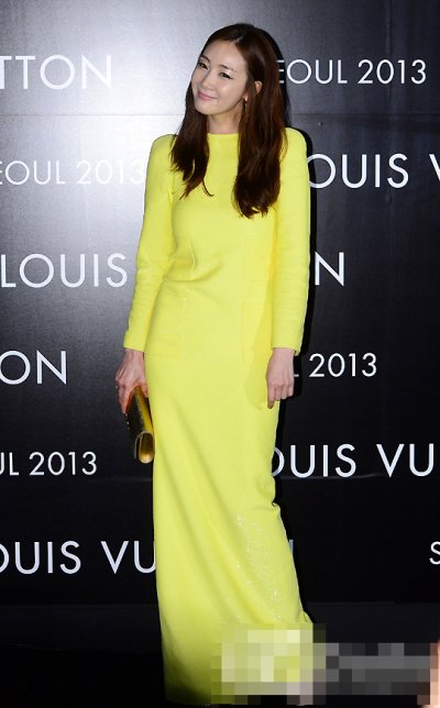 아무나 못 입을 샛노란색 롱 드레스를 입은 최지우