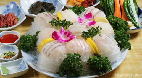 농어회는 그 특유의 쫄깃한 식감이 일품입니다.