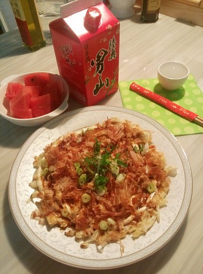 오꼬노미야끼만들어서 막걸리 한잔 하트.