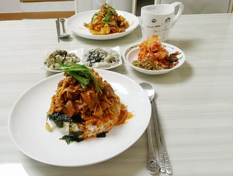 신혼집에서 간단하게 만들어먹은 제육 덮밥.