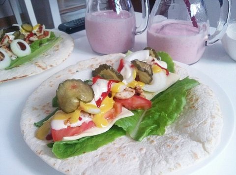 아무거나 대충 넣어서 치킨랩이라고 우기며 먹으면서 영화보기.