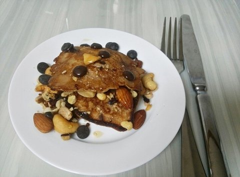팬케이크 먹고 싶다고 해서 새벽에 만든 초코 팬케이크에요.