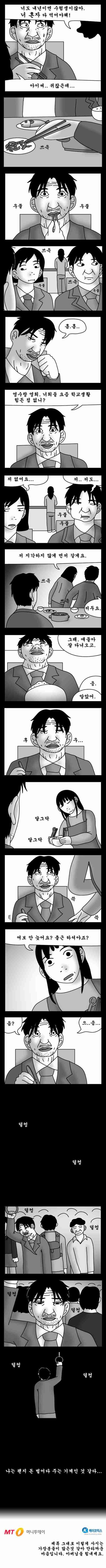 감동적이면서 씁쓸하네요 .. 제 주변에도 보면 그냥 돈벌어오는 기계로 생각하고 사시는 언니들 많던데.. ㅠㅠ 전 내일도 남편위해서 ..남편의 요리사.. 친구.. 엄마.. 와이프가 되어줄겁니다~~
