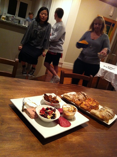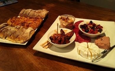 식사 전 입가심으로 치즈와 빵, 스낵을 먹었다.
