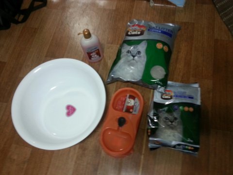 고양이를 안키운지 약 1년이 넘었기에 집에 사료, 밥그릇, 똥통, 모래가 있을리가 없습니다....