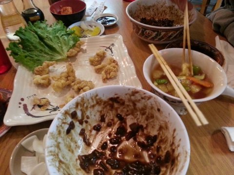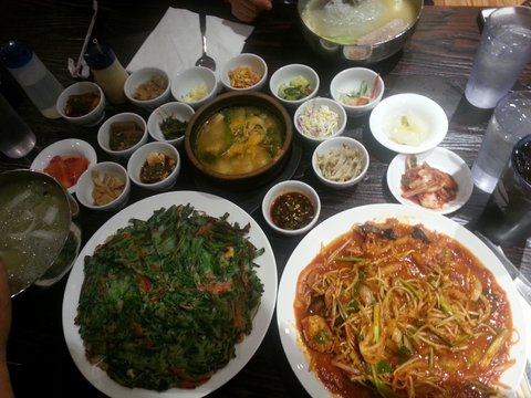 아구찜, 물냉면, 부추전, 된장찌게.. 셋이서 먹느라 혼났어요 ㅠㅠ