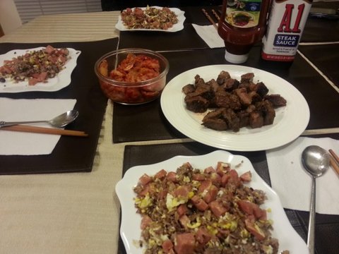 남자친구집에서 해먹은 스팸달걀 볶음밥이랑 스테이크