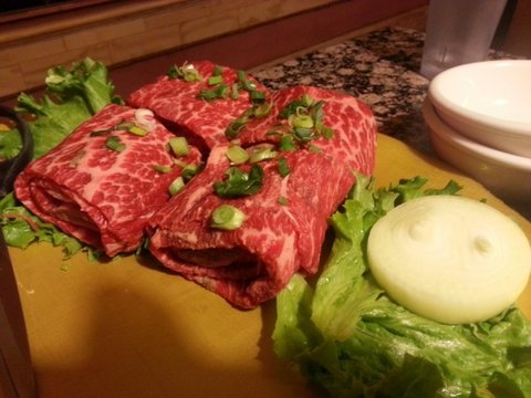 생갈비 이인분 ㅠㅠ 여기는 갈비 이인분시키면 차돌 일인분이 서비스!! 차돌먼저 구워먹었죠~