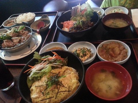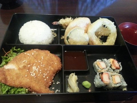 아침안먹어서 너무 배가고파 초점도 없어진 사진들,,, 컵이 대나무 모양 ㅎ 템프라 우동이랑 도시락세트 플러스 니기리