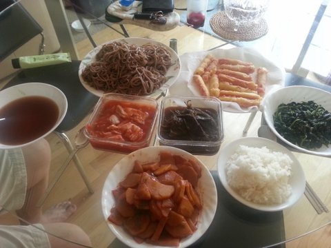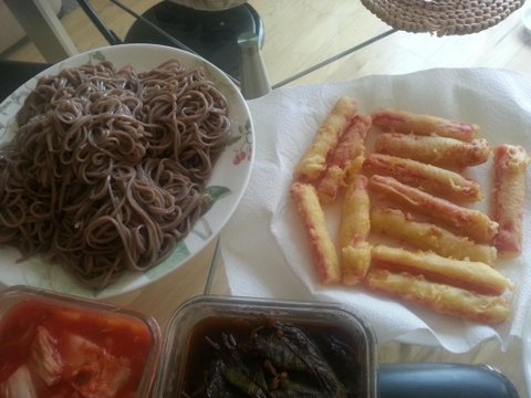 집에서 먹는 모밀국수랑 맛살튀김 ㅋㅋ