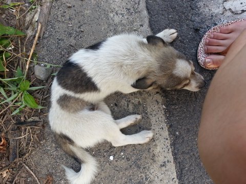 옆에는 어미개로 추정되는 몸집이 두 배 정도 큰 강아지도