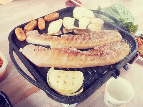 갈비집인데 차돌박이랑 돼지껍데기는 서비스