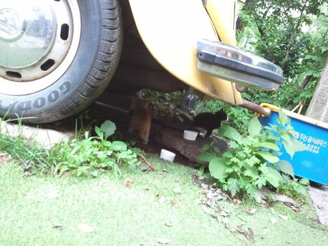 시간이 조금 흐르고 난 그 고양이를 잊을수 없엇음곰곰히 생각한 끝에 나는 고양이에게 맛있는것을 주기로 함고양이에 대해 무지한지라 여친한테 전화 해서 조언을 구한뒤(길냥이들이 안좋은 음식을 먹어서 몸이 부었다는 말이 조금 충격적이였음.. 난 잘먹어서 살 찐줄 알았는데)냉장고에서 살아 숨 쉬는 먹다가 남은 싱싱한(?) 참치캔을 오픈확장을 하고참치들을 손으로 열심히 씻고 또 씻은 후 테이크아웃 잔을 잘라서 담아줌그리고 울 가게 앞에 전시용으로 세워진 자동차가 있는데거기 밑이 가장 은밀할거라 생각 해서 차 밑에 일용한 양식을 깔아주려던 참에어이쿠!!