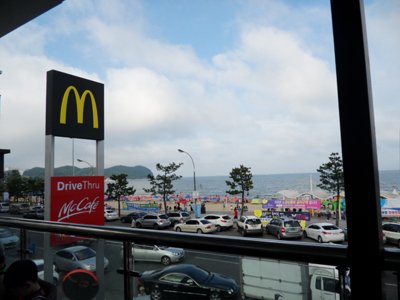 바닷가를 거닐다가 잠시 들어갔었던 수평선이 보이는 바닷가에 위치한 맥도날드 !