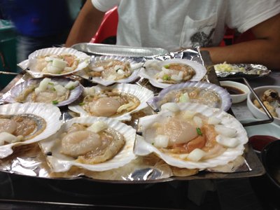거기서 밥을 먹기로 하고, 가장 맛 있어 보이는 조개구이 집으로 들어갔답니다