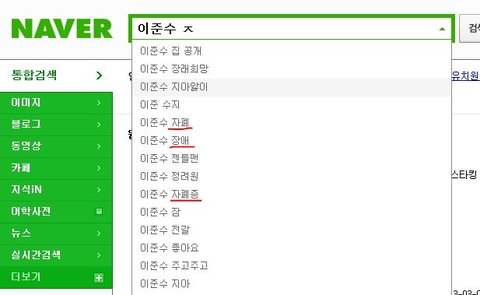 다름이 아니라 얼마 전 네이버에 '이준수 장래희망'이라고 검색하던 중 연관검색어에 뭔가 스쳐지나가 듯 보여서 다시 쳐봤더니 이렇게 뜨더군요..
