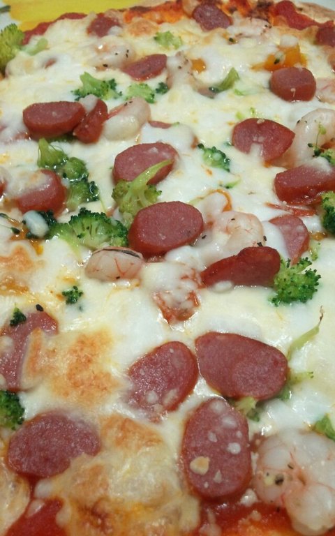 걍오븐이랑 또띠아빵 피자치즈 사서 집에있는 해물이랑 소세지랑 넣어서 만들었는데