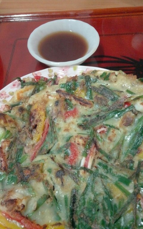 비오는날 전종류가 너무먹고싶어서...아가만보니...해물파전이 아닌 해물부추전이네요ㅠㅠ